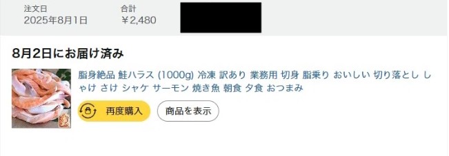 「ハラス サーモン」で検索をかけた。