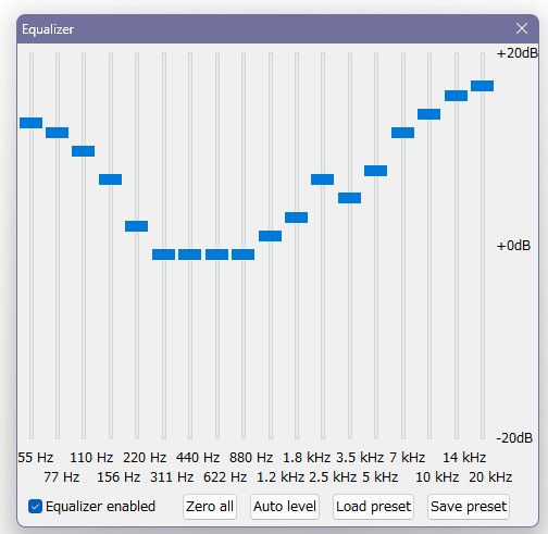 DSP (イコライザ)でこうすると、聴いてやってもいいかって感じです。